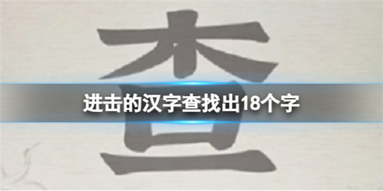 进击的汉字查找出18个字怎么过?进击的汉字查找出18个字是游戏中很有挑战性的一个关卡,这个关卡有着全新的玩法设计,给玩家带来很多的游戏体验,在游戏中玩家可以自由战斗,体验很多好玩的操作,还会有全新的关卡等你来挑战,游戏的关卡玩法多样,不同关卡会有各种挑战,需要玩家很多的操作,还有各种思考才可以完成关卡挑战,在游戏中还会有很多有趣的玩法,完成关卡挑战,可以解锁更多好玩的关卡,给玩家带来更多的游戏体验,游戏的查找出18个字怎么过很多玩家不知道,小编这里有查找出18个字怎么过的详细玩法,不知道查找出18个字怎么过的小伙伴可以来这里看看。