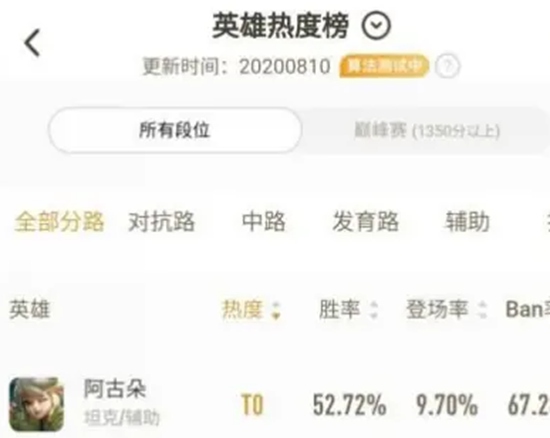 5.在ban率上点击一下排序,我们就可以看到哪些英雄ban率高了