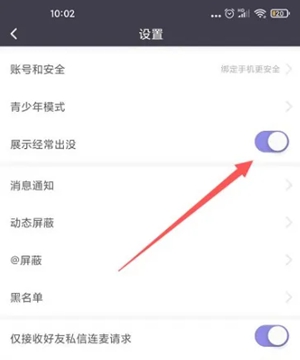 4.关闭滑动条 在设置里面找到“展示经常出没”功能,关闭滑动条。