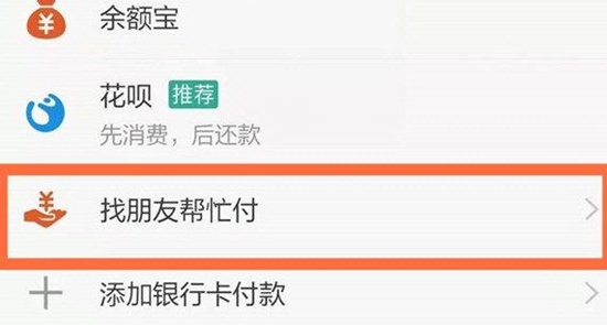 2. 在付款方式页面,您会看到一个选项称为“找朋友帮忙付”。请点击这个选项。