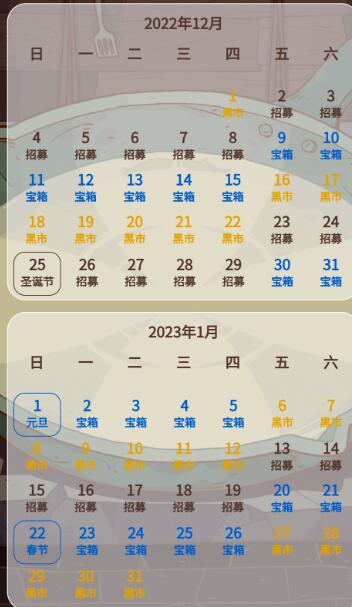春节(2023年.1.22),春节必须有重大活动,毕竟举国同过春节,布布推测应该和暑期活动对标,持续时间长的寒假活动的。