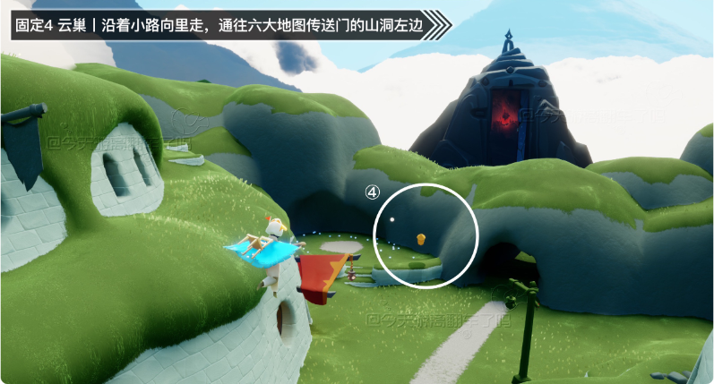 固定代币位置4:沿着小路向里走,通往六大地图传送门的山洞左侧