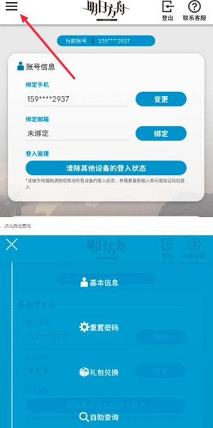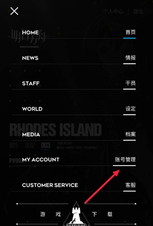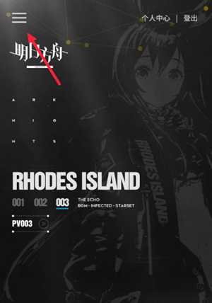 1、登录明日方舟官网,点击左上角。