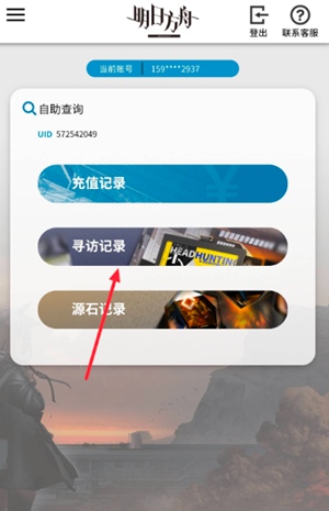 明日方舟怎么查看抽卡记录?游戏中很大一部分的角色需要玩家参与抽卡才能获得,玩家从开始进入游戏的萌新直到成长为萌新口中的大佬的过程中,抽卡的次数肯定是少不了的,想要直到自己的抽卡次数和自己通过抽卡获得过哪些干员就要用到账号管理功能中的自助查询了,在自助查询的功能列表中有个寻访记录的选项,其中的信息就是玩家的抽卡记录,玩家抽卡的时间、卡池和获得的角色都显示其中,以下就是在明日方舟中查询抽卡记录的具体操作流程。