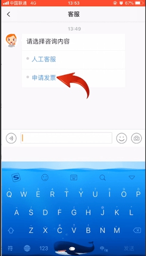 2、接着点击【在线客服】,再点击右下角【联系客服】-【申请发票】即可。