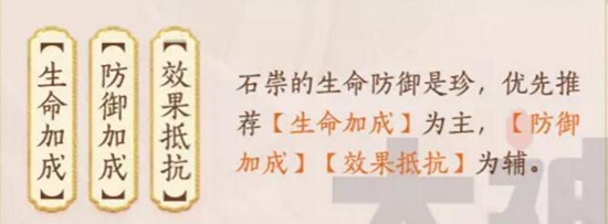 石崇具有很高的保护机制,适合作为辅助使用,石崇很适合给哪些爆发高,速度低而且皮很脆的名士作为辅助,适合多辅一。
