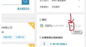 3、登录后便自动进入个人主页,在主页右侧找到简历栏,有下载按钮;