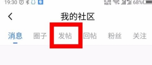 打开我的社区界面后,在上面的菜单选项中,点击发帖。