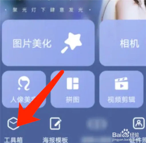 1、我们进入到美图秀秀后,选择左下角的工具箱;