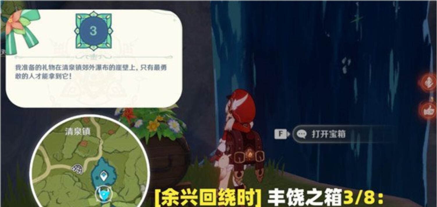 [余兴回绕时]丰饶之箱3/8:清泉镇南方湖心传送点瀑布旁边。
