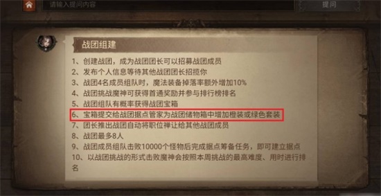 2、战团宝箱提交给主城战团管家,可以为战团储物箱中增加橙装或绿色套装。