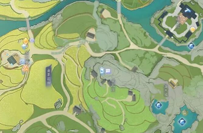 3、第三个宝箱在玉河台位置的树下,旁边有个钓鱼点。