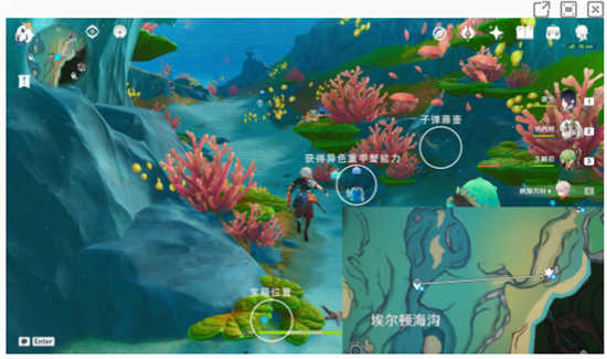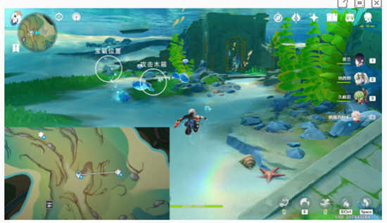 6、传送至枫丹钓鱼协会东北处的水下锚点,继续向东边游,对膨膨兽附近的木箱进行攻击即可。