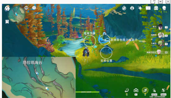 7、传送到塔拉塔海谷南边的水下锚点,继续向东南方向游,利用得到的异色猎刀鳐技能,对海草发起进攻即可。