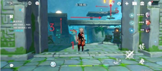1.关卡中,需要收集散落在各处共25个风循币、完成共3个循风挑战,并到达终点。