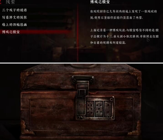 6、右边上二楼用钥匙打开走廊右边的房间,用火柴点燃桌上的灯,墙上获得新手记,根据新手记的颜色打开左边的柜子,获得马面裙,床上获得家书线索。