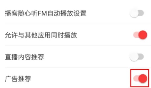 3.关闭广告推荐右侧开关即可。