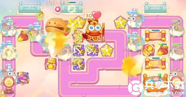 3、喷火器的话可以利用双锁头技巧,加快前期清线的速度,但是如果操作失误很容易导致萝卜被吃掉;在第一个星星下面再建一个星星;