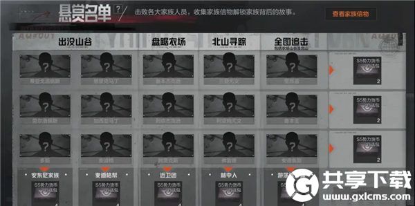 活动期间,农场、山谷、北部山区地图内的所有敌人身上将携带代表其身份的家族信物。横向或竖向悬赏图鉴全部激活时,可获得势力货币自选包奖励。