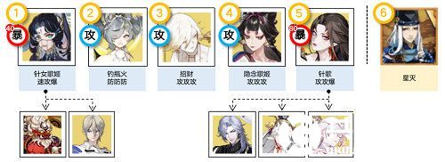 6、【替换】孔雀明王可以替换为两面佛、大天狗等带自拉条的群体多段输出,铃彦姬可替换为月读、铃鹿御前等,伤害主要看针女和双重暴击触法氢况,但低保绰绰有余
