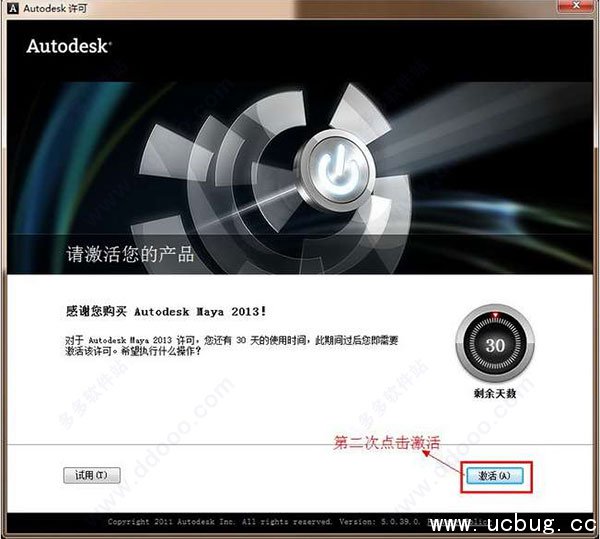3、打开 Maya 2013 点击右下角的“激活”按钮。